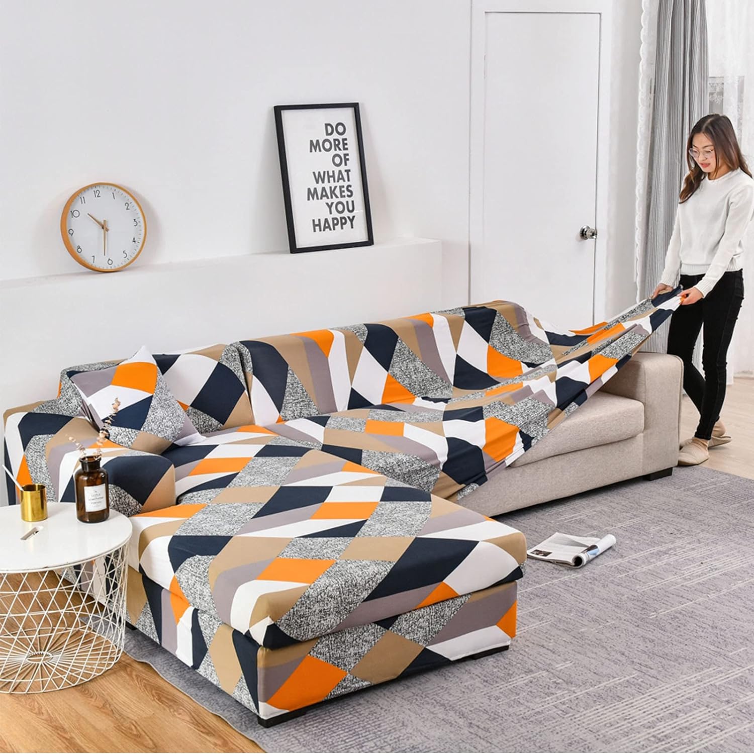 Our L-shaped sofa covers feature elastic straps, anti-slip backing, and corner ties to keep them securely in place, providing a snug fit that enhances both style and functionality.