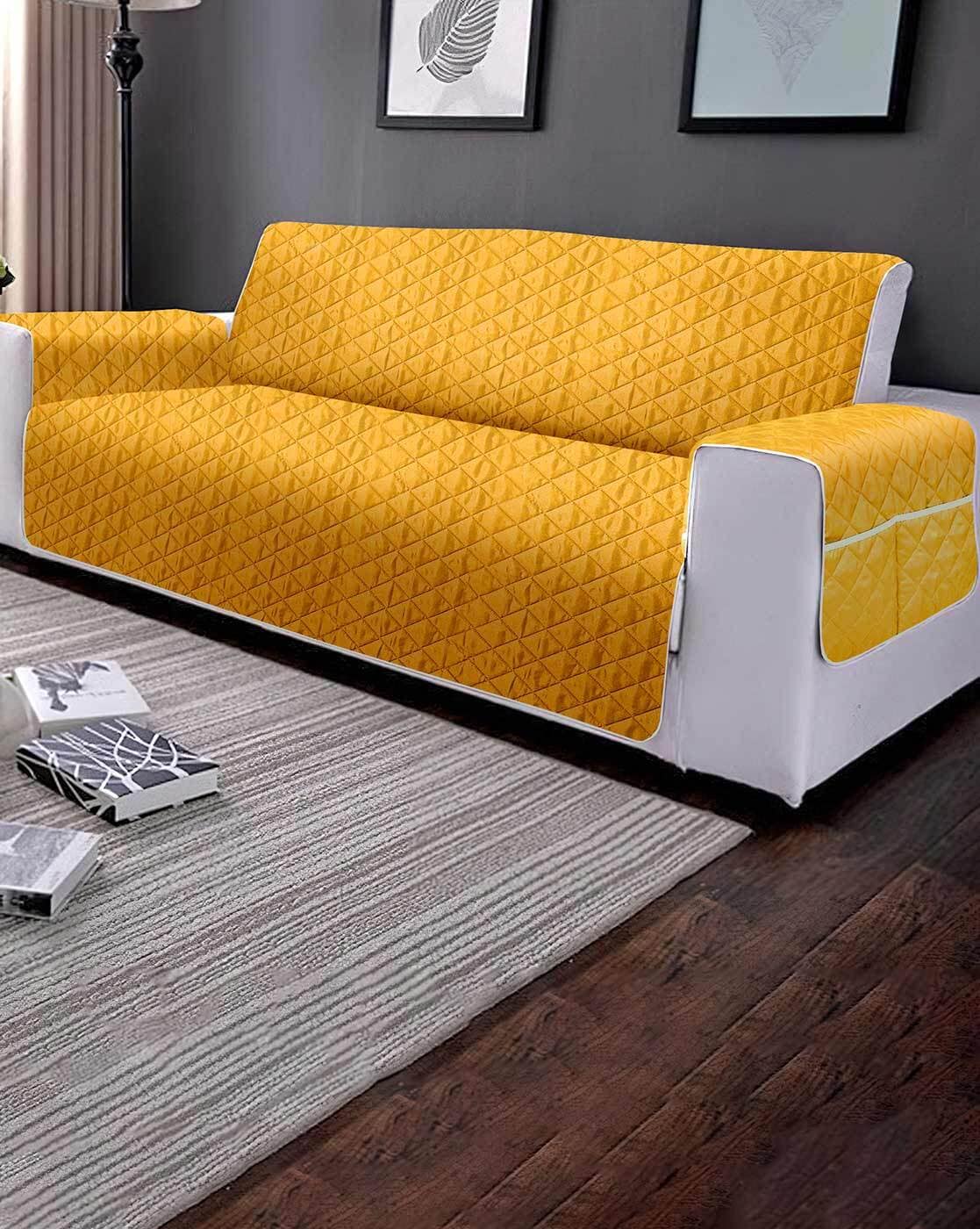 Reversible Quilted Waterproof Sofa Protector - Mustard & Brown