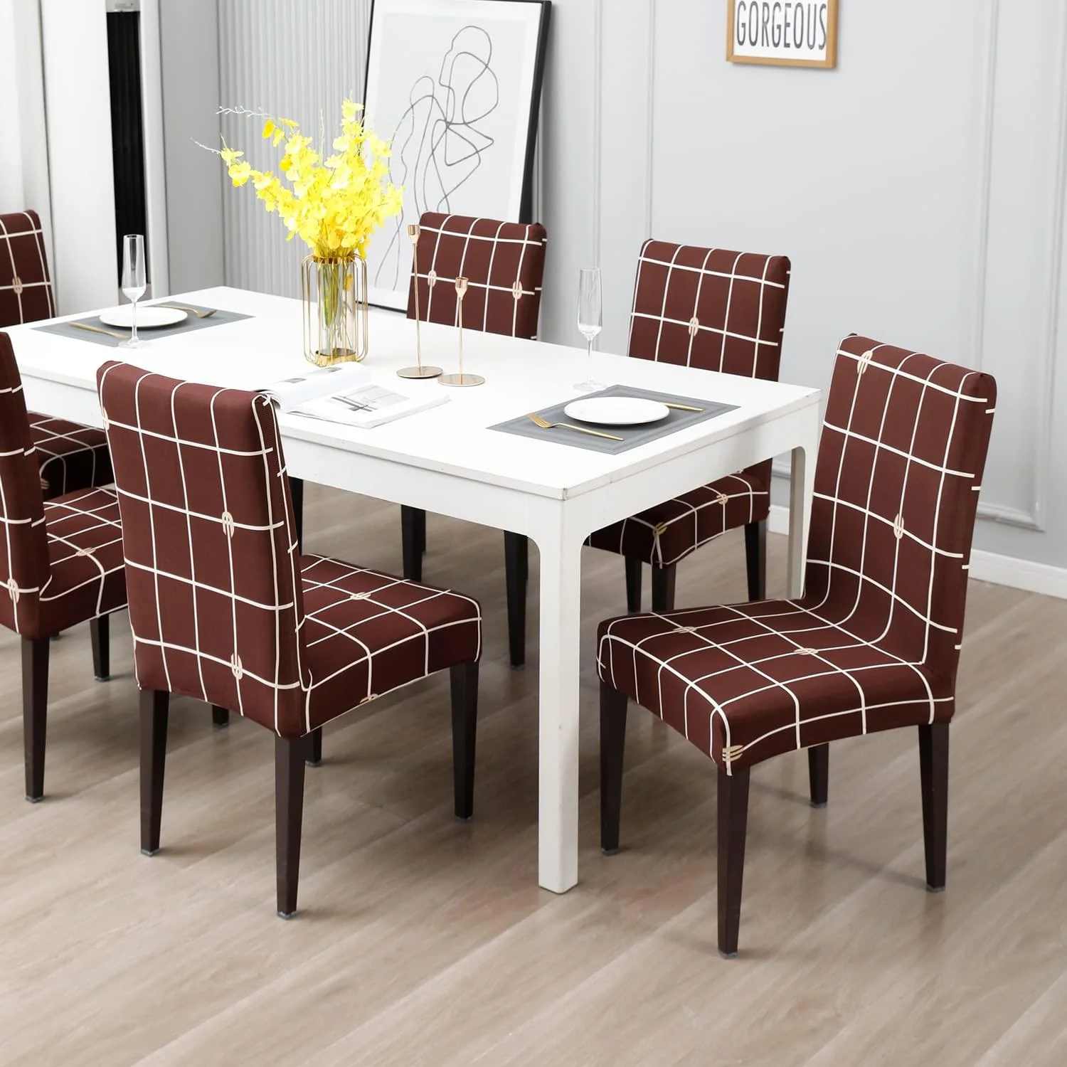 Stretchable Chair Covers, Check Brown